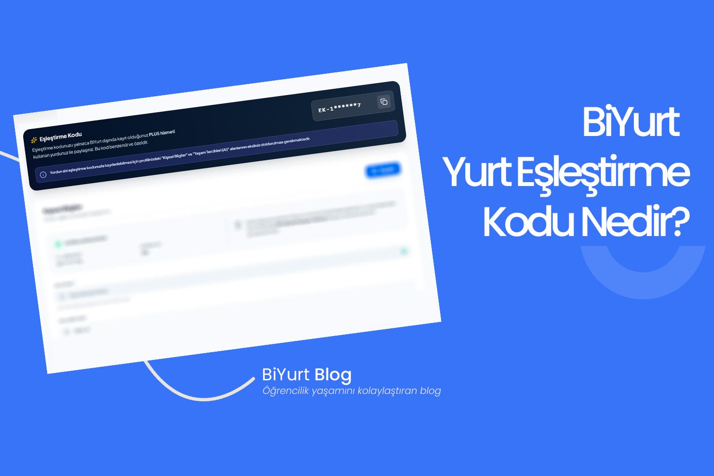 BiYurt Eşleştirme Kodu, yalnızca sana özel oluşturulan bir eşleştirme anahtarıdır. Amacı, BiYurt hesabını kaldığın yurda güvenli şekilde bağlamaktır.